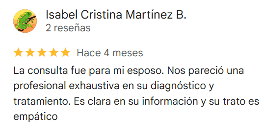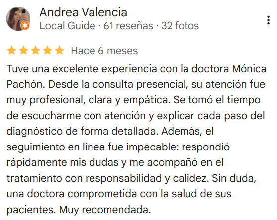 Escucha lo que nuestros pacientes tienen que decir sobre su experiencia con la Dra. Mónica Pachón Quevedo y cómo ha transformado su cuidado de la salud.